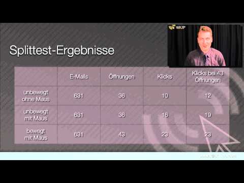 Was können Sie aus diesem Video lernen? Kleine Änderungen können erhebliche Auswirkungen haben. Was würde es für Ihr Unternehmen bedeuten, wenn die Zahl der Besucher ihrer Website um 462 Prozent steigen würde? Unter sonst gleichen Umständen würde Ihre Website auch 462 Prozent mehr Umsatz erzielen! Wenden Sie die Ergebnisse dieses Splittests auf Ihr E-Mail-Marketing an. Nutzen Sie die in Klick-Tipp integrierte Splittest-Funktion, um die Zahl der Kunden, die Sie im Rahmen Ihres E-Mail-Marketings gewinnen, deutlich anzuheben! Bei Klick-Tipp bekommen Sie erstklassiges professionelles E-Mail-Marketing. Klick-Tipp wurde mit dem Ziel entwickelt, mithilfe von E-Mail-Marketing ein Maximum an Resonanz zu erzeugen. Besuchen Sie die Website von Klick-Tipp und informieren Sie sich darüber, wie Sie über das Internet effektiv neue Kunden gewinnen können! Tags: E-Mail-Marketing, Marketing Mailing